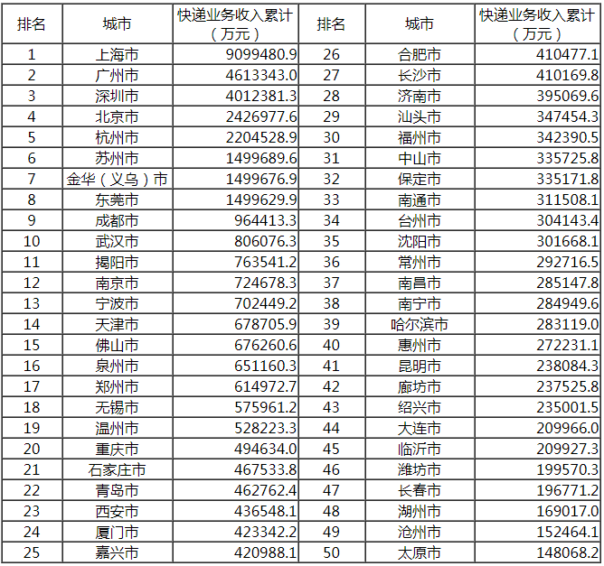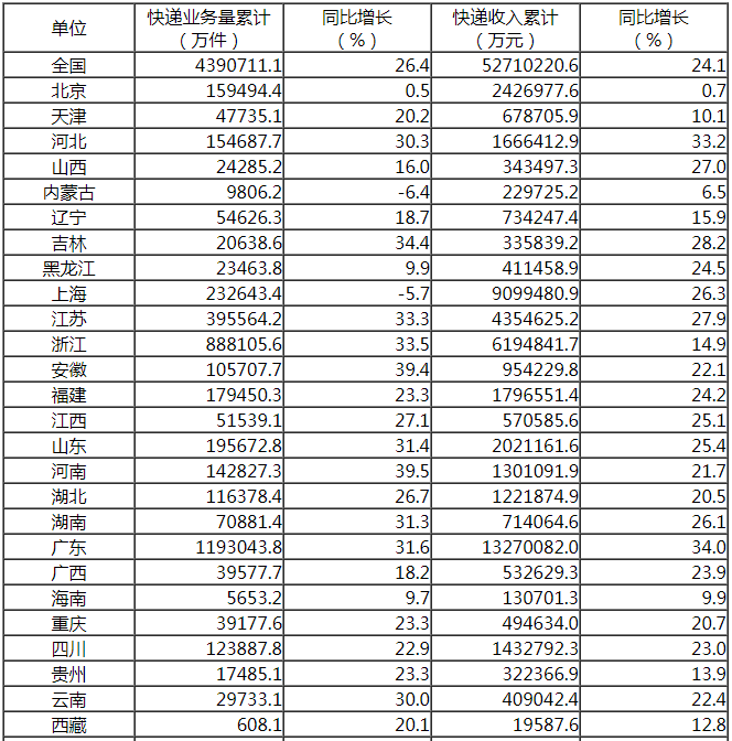 分省快遞服務(wù)企業(yè)業(yè)務(wù)量和業(yè)務(wù)收入情況表