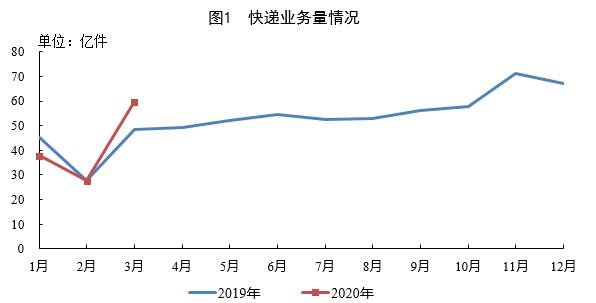 3月份,全國快遞服務(wù)企業(yè)業(yè)務(wù)量完成59.8億件,同比增長23%;業(yè)務(wù)收入完成669.1億元,同比增長12.3%。