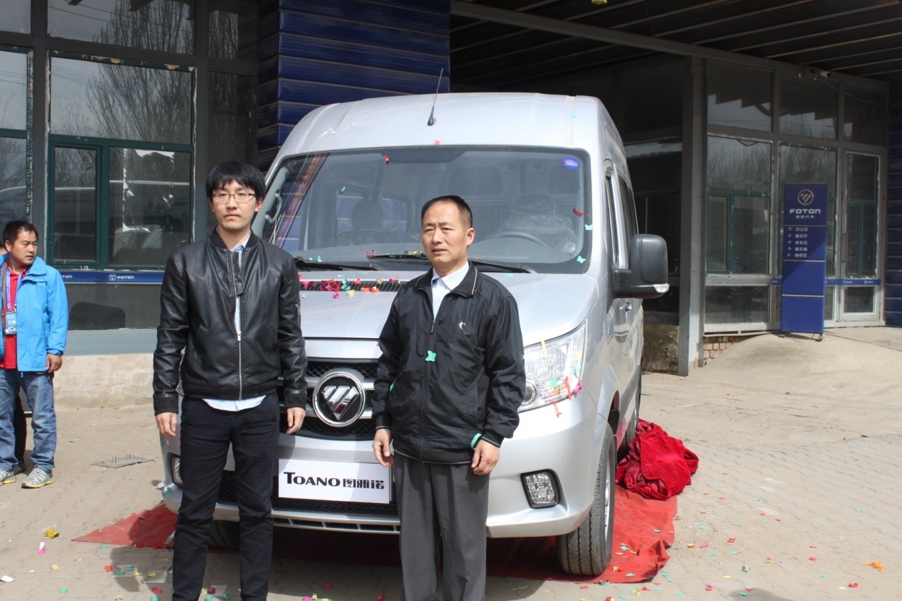【福田輕型商用車事業本部商務汽車營銷傳播部部長于金帥先生與超然包頭汽車銷售有限公司董事長張煥坡先生為福田圖雅諾元首國賓車國V新車揭幕】