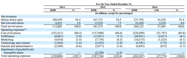 京東2014-2016年財報節選