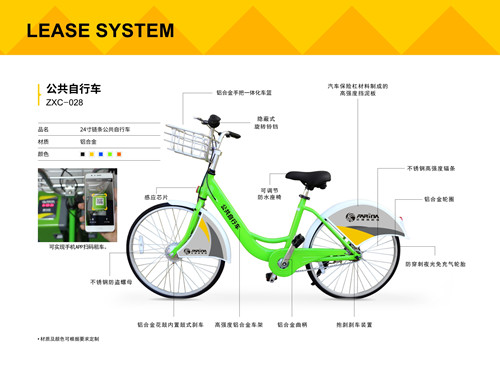 公共自行車的主要材料是鋁合金和不銹鋼,能夠防銹防腐蝕;金屬前車籃與車把一體焊接,屬于防拆設(shè)計(jì),防盜性能強(qiáng);車架自帶避震器,使用戶騎行更加舒適;系統(tǒng)采用全封裝制動(dòng)器,前輪采用鼓剎,后輪抱剎,雙重剎車設(shè)計(jì)更加安全;該車的輪胎采用新型免充氣輪胎,鋁合金加刀圈,增加耐用性;車座設(shè)計(jì)舒適,快速升降及鎖定、車鈴及隨車鎖具,操作簡單方便;另外具有電子身份識(shí)別卡,車型符合人體工程設(shè)計(jì),更加舒適和安全可靠。
