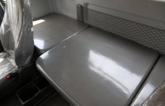 除大空間之外,乘龍T7還采用美式發動機三點懸置,配備氣囊減震座椅。更重要的是它的臥鋪設計,下層為三段結構,鋪平后就是一張單人床。將中間一段向后推起,底部有折疊小桌板,放下小桌板就可以供兩人在這里休息、吃飯。這些人性化設計為司機出行提供良好的駕駛體驗。