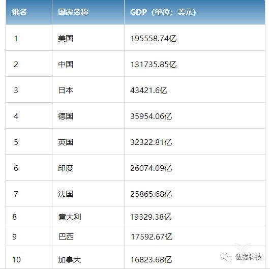 世界十國GDP排名