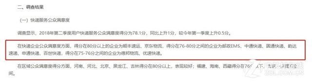 不同的快遞之間還是有略微的差別,比如京東和順豐快遞會更快也更穩(wěn)定一些,而其他的快遞使用體驗也有不同。最近國家郵政局公布了關(guān)于2018年第二季度快遞服務(wù)滿意度調(diào)查通告,在快遞企業(yè)公眾滿意度方面,得分情況如下:
