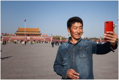傍晚,扎西站在景山上俯瞰故宮,他用手機拍下北京的落日,“站這心里開闊得很,天氣也和拉薩差不多,感覺(北京和拉薩)很近。”
