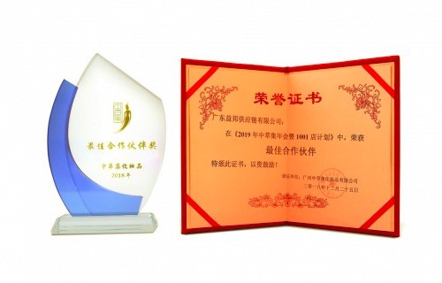 12月25日,在2019年中草集年會上,憑借優越的物流供應鏈運營服務,益邦供應鏈一舉斬獲了《2019年中草集年會暨1001店計劃》最佳合作伙伴獎。在中草集業務持續穩定發展地過程中,益邦物流作為重要的供應鏈戰略合作伙伴,通過為中草集提供全方位的精益供應鏈解決方案和運營管理,并結合業務的實際需要,優化操作流程和提高運作質量,持續提升客戶滿意度,有力地支持了中草集全國業務的擴張和發展。
