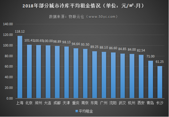 (2)按地域租金比較,地區(qū)之間租金差異較大,東高西低,沿海地區(qū)高,內(nèi)陸地區(qū)低。例如,上海冷庫平均租金高達(dá)118.12元/㎡·月;長(zhǎng)沙冷庫平均租金卻低至61.25元/㎡·月。