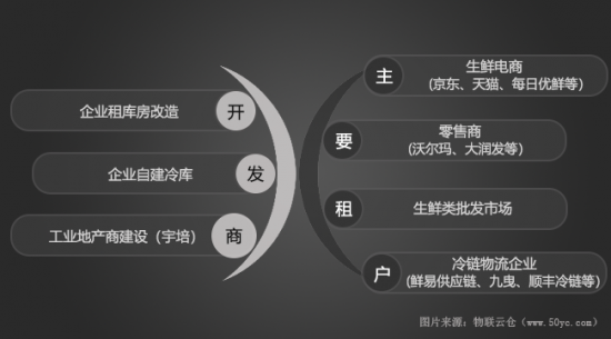 物聯(lián)云倉城市經(jīng)理還表示,2018年冷庫的主要租戶分為四大類:其一,生鮮電商,京東、天貓、每日優(yōu)鮮等電商平臺(tái)企業(yè)有直接租賃行為;其二,零售商,比如沃爾瑪、大潤(rùn)發(fā)等;其三,生鮮類批發(fā)市場(chǎng)里的批發(fā)商;其四,冷鏈物流企業(yè),比如鮮易供應(yīng)鏈、九曳、順豐冷鏈等。其中,冷鏈物流企業(yè)對(duì)于冷庫需求巨大,是租賃冷庫的主力軍。