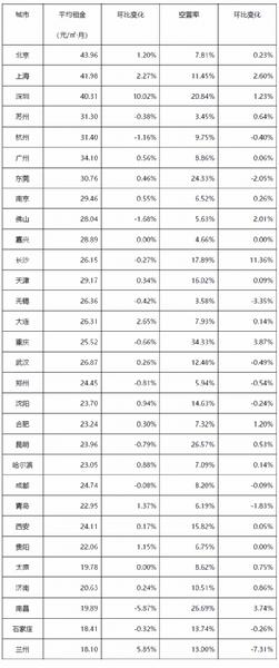 表:全國30個城市平均租金和空置率一覽表