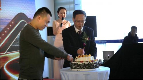 【彭仕順副總經理與卡友共切蛋糕為卡友慶生】