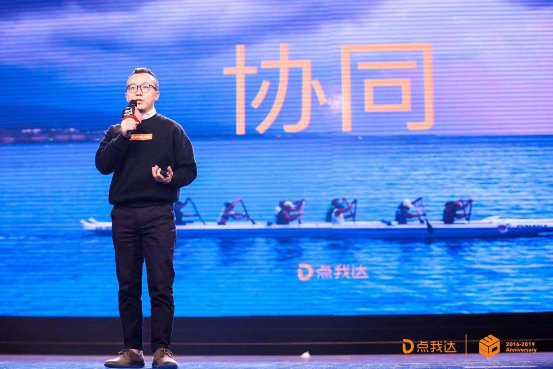 圖為點我達聯合創始人謝新宇解讀生態協同