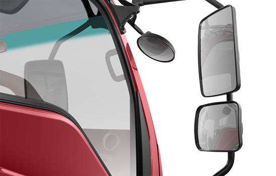 寬體駕駛室,空間變得舒適的同時也意味著視覺盲角更多,解決方法是安裝更大面積的后視鏡,這樣以來就解決了視覺盲區問題,而巨大的前照地補盲鏡更是解決了車輛前方的盲區問題。