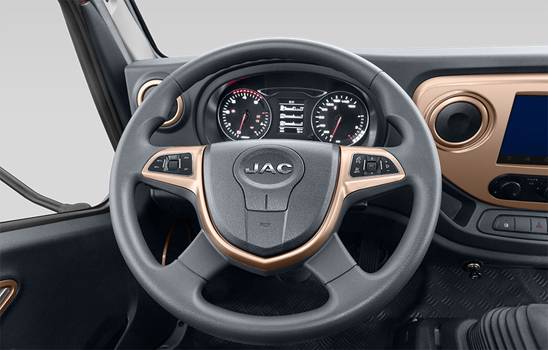 方向盤還是江淮輕卡經典造型,鑲嵌的盾形結構結合撞色設計,再加上符合人體工程學的方向盤結構,即使長時間駕駛,也可以有效降低因視覺單調或方向盤結構不合理而引發的疲勞問題。