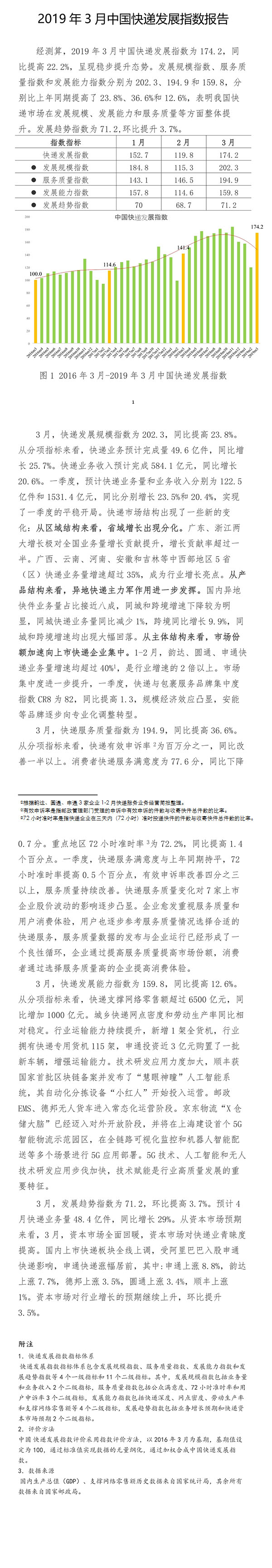 2019年3月中國快遞發(fā)展指數(shù)報告