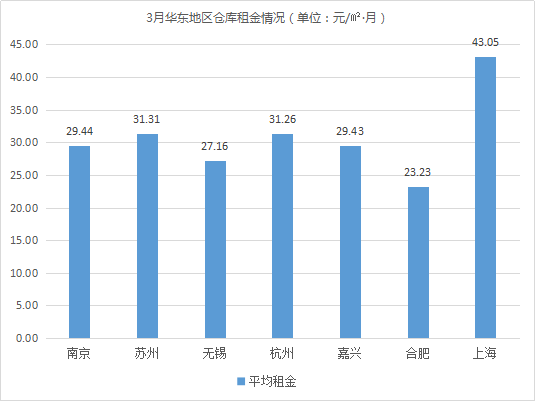倉庫平均租金最高的城市為北京、上海、深圳,均高于40元/㎡·月。相較2月,深圳倉庫租金波動不大;北京因部分租戶無法承受高昂的倉庫租金,選擇退租退倉,市場上釋放出部分倉庫,導致倉庫租金有小幅下降(降幅為0.95%);上海受政府拆違、倉儲用地供應稀缺以及物流、電商企業倉庫需求持續保持旺盛三方面的影響,倉庫資源供不應求,平均租金有小幅上漲(漲幅為1.18%),據上海土地規劃與自然局土地交易信息顯示,3月12筆土地成交交易中,僅有1筆為倉儲用地,物流地塊供不應求。