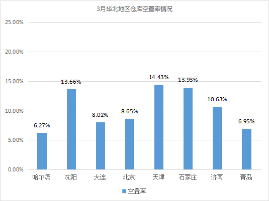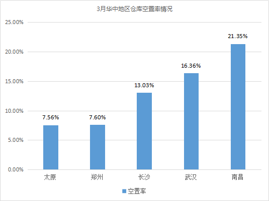 全國30個城市倉庫平均空置率為11.08%,環比下降0.85%。其中,華東地區倉庫空置率低于其他四個區域(華南、華中、華西、華北)。相較2月,華南地區倉庫空置率有小幅上漲,漲幅為0.56%;其他四個區域倉庫空置率有所下降,降幅分別為1.30%(華中)、2.59%(華西)、0.50%(華北)、0.26%(華東)。