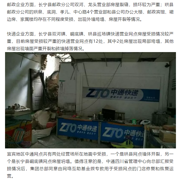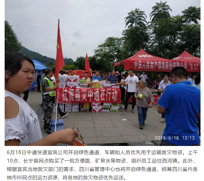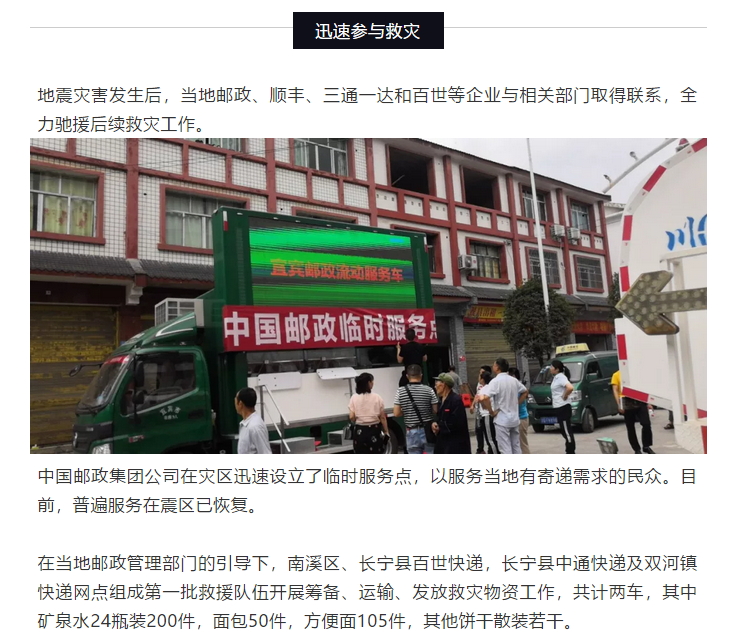 宜賓地震后 郵政、順豐、三通一達、百世都做了什么