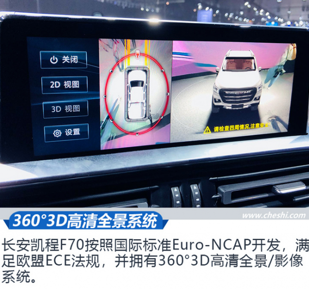 在安全性上,長安凱程F70匹配ESC、主副安全氣囊等一系列主動安全設備,360°3D高清全景影像系統(tǒng)的使用令長安凱程F70的安全屬性更科技更高端。該系統(tǒng)極為智能,一旦車四周出現(xiàn)障礙物,系統(tǒng)就會自動啟動,確保車主實況了解周邊路況,及時破除視覺盲區(qū)。