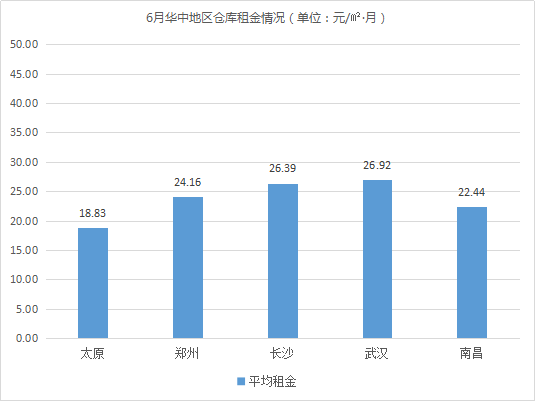 倉(cāng)庫(kù)平均租金最低的城市為太原、石家莊、蘭州,均低于21元/㎡·月。相較5月,蘭州、石家莊倉(cāng)庫(kù)租金波動(dòng)不大;太原因受618年中大促影響,租戶(hù)集中在5月租倉(cāng),6月倉(cāng)庫(kù)需求逐漸呈回落態(tài)勢(shì),導(dǎo)致倉(cāng)庫(kù)平均租金有所下降,降幅為5.85%。