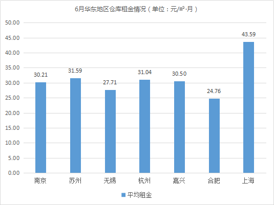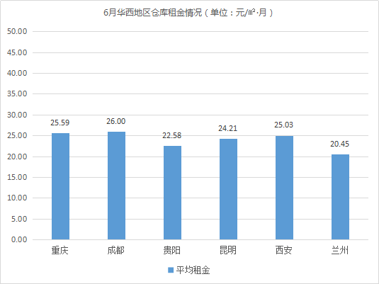 全國(guó)30個(gè)城市倉(cāng)庫(kù)平均租金為27.77元/㎡·月,環(huán)比上漲0.95%。其中,華南、華東地區(qū)倉(cāng)庫(kù)平均租金高于華北、華西、華中地區(qū)。相較5月,華西、華東地區(qū)倉(cāng)庫(kù)平均租金波動(dòng)不大,保持平穩(wěn);華中、華北、華南地區(qū)倉(cāng)庫(kù)平均租金均有所上漲,漲幅分別為1.58%(華中)、1.44%(華北)、1.01%(華南)。