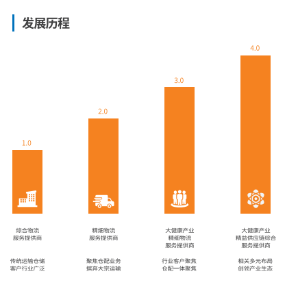 益邦供應(yīng)鏈順應(yīng)趨勢潮流,從綜合物流服務(wù)商、精細(xì)物流服務(wù)提供商、大健康產(chǎn)業(yè)精細(xì)物流服務(wù)提供商一步步發(fā)展為大健康產(chǎn)業(yè)精益供應(yīng)鏈綜合服務(wù)提供商,從物流走向供應(yīng)鏈,其中,倉儲運(yùn)營、運(yùn)配服務(wù)、物流科技、咨詢服務(wù)這四部分組成其供應(yīng)鏈整體框架。