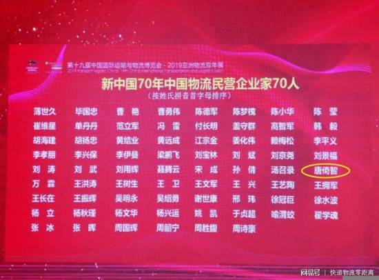 70年風(fēng)雨兼程,70年滄桑巨變。為了全方位總結(jié)我國(guó)物流行業(yè)發(fā)展成果,充分展現(xiàn)物流企業(yè)家風(fēng)采,近日由中國(guó)物博會(huì)組委會(huì)等相關(guān)單位發(fā)起的“新中國(guó)70年中國(guó)物流民營(yíng)企業(yè)家70人推選活動(dòng)”(簡(jiǎn)稱“70人推選活動(dòng)”)上,唯品會(huì)高級(jí)副總裁、品駿控股有限公司總經(jīng)理唐倚智,憑其在物流業(yè)的杰出貢獻(xiàn)和奮斗精神成功上榜,成為“新中國(guó)70年中國(guó)物流民營(yíng)企業(yè)家70人”之一。