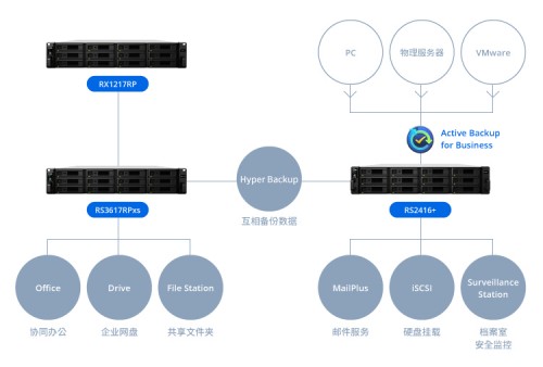 企業數據備份的難題通常來源于跨平臺、跨設備和跨系統,備份源分散,意味著要花費更多的軟件費用或是更曲折的備份方案。而群暉Active Backup for Business(以下簡稱“ABB”)可以實現多平臺備份一體機,支持PC、服務器、虛擬機的整機備份和還原。