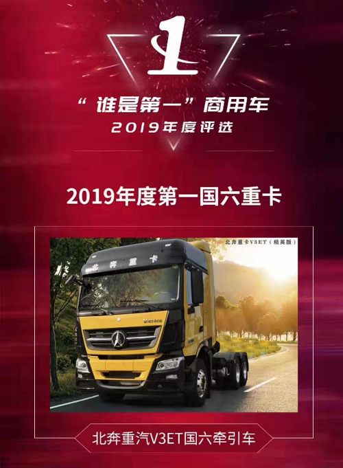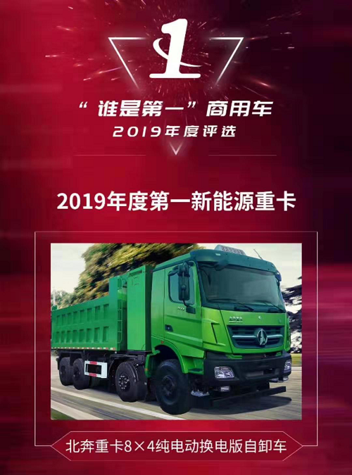 在此次2019“誰是第一”商用車年度評選結果中,“北奔新能源自卸車”與“北奔國六牽引車”分別斬獲“2019年度第一新能源重卡”、“2019年度第一國六重卡”的稱號。