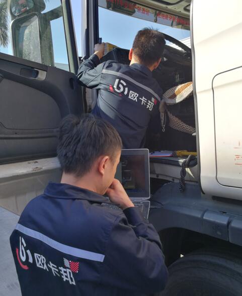 此次比賽采用了理論實操結合的比賽形式,理論考試采用遠程發卷的形式進行答題,而實操考核則被安排在了廣州,現場對卡車進行了保養和故障診斷排除、溝通服務、單據填寫等實際考核,并由評委為現場操作打分。
