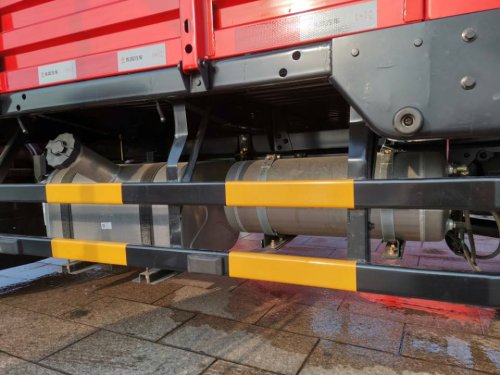 車輛在輕量化方面下足了功夫,全車大量采用了鋁合金材質的配件,其中的鋁合金油箱和鋁合金儲氣筒在大幅度降低自重的同時,耐腐蝕效果同樣突出。
