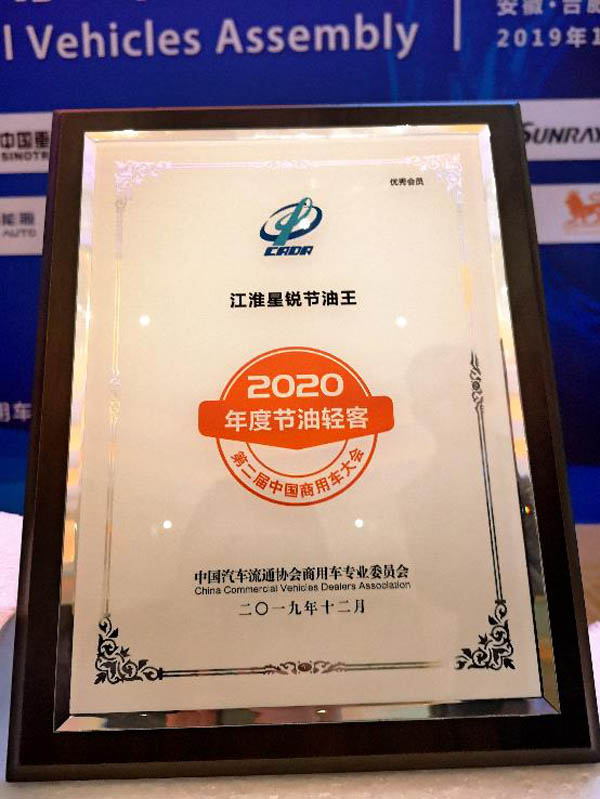 再獲權威協會認證,江淮星銳榮膺“2020年度節油獎”