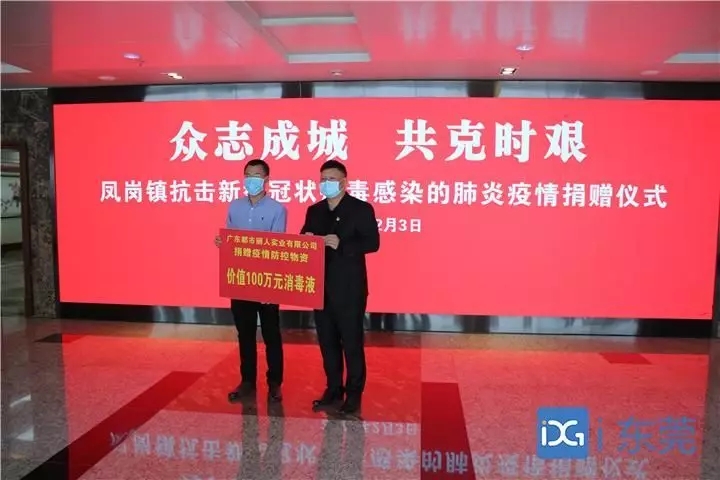 目前疫情防控正處于關鍵時刻,面對防疫物資緊缺的情況,2月3日,廣東都市麗人實業有限公司(以下簡稱“都市麗人”)黨委書記、董事長助理李文鋒代表集團,向鳳崗鎮政府捐贈了價值100萬元的消毒液,這些物資將源源不斷地涌向抗擊疫情前線。