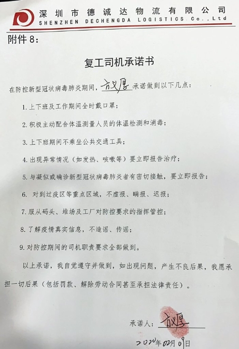 運可視港口物流智慧平臺認(rèn)真落實國務(wù)院《關(guān)于切實加強疫情科學(xué)防控有序做好企業(yè)復(fù)工復(fù)產(chǎn)工作的通知》的要求,按照科學(xué)、合理、適度、管用的原則制定針對性復(fù)工措施,執(zhí)行《駕駛員防控職責(zé)要求》、《復(fù)工司機承諾書》,保障新老客戶訂單運作流暢,一如既往為新老客戶提供優(yōu)質(zhì)的拖車報關(guān)服務(wù)。