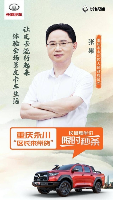 說起永川好物,絕對不能錯過長城炮!作為中國首款乘用化皮卡品牌,長城炮產自重慶永川區的長城智慧工廠。既是地產車,又是皮卡生活方式的引領者,長城炮可以說與這次直播活動緊密相連。在“雙曬”直播期間,長城皮卡宣布面向全國推出購車活動,讓永川區的直播更加火熱。