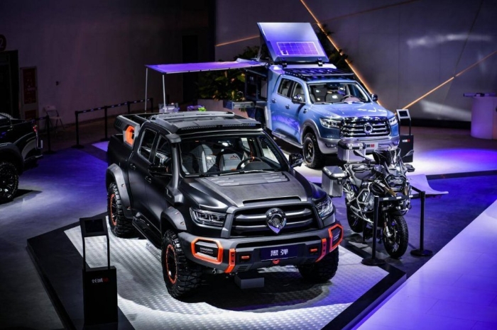 本次車展上,以長城炮越野皮卡改裝而來的黑彈震撼亮相,以更加硬朗威猛的造型、黑橙色彩搭配,彰顯出舍我其誰的霸氣。
