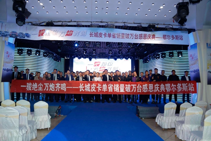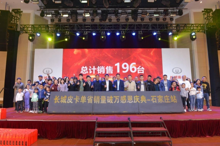 10月25日,長城皮卡單省銷量破萬感恩盛典成功舉辦。長城皮卡同時聯(lián)動河北、山東、內(nèi)蒙古省份十幾個地市,共同慶祝在該省年銷量突破1萬臺。今年1~9月,長城皮卡在國內(nèi)市場占有率已近50%,在河北、山東、內(nèi)蒙古的表現(xiàn)更是惹人關(guān)注,制霸市場。