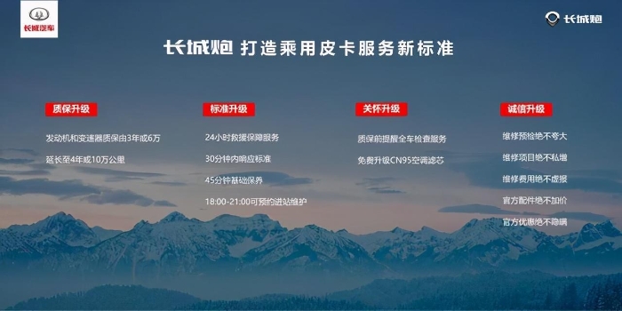 服務(wù)方面,長城皮卡依托遍布全國的2000多家網(wǎng)點觸達每位消費者,并做到五個“絕不”、四大“承諾”,為用戶免去后顧之憂。