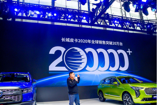2020年全球銷量突破20萬臺!目前唯一年銷突破20萬臺的中國皮卡品牌!廣州國際車展開幕日,長城皮卡給出的“年終總結”簡單而有沖擊力。在疫情影響和中國車市進入存量時代的背景下,1-10月中國乘用車新車銷量下滑10%,而長城皮卡卻以同比增長58.2%的戰績,成為市場難得的亮色。