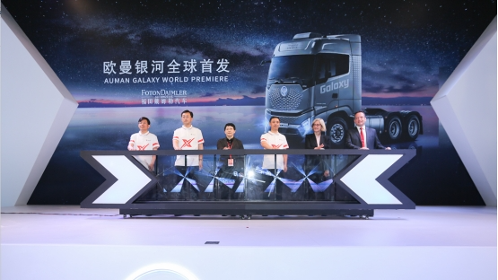 福田汽車發布會上,最引人矚目的莫過于福田戴姆勒汽車全新高端重卡——歐曼銀河的全球首發儀式。