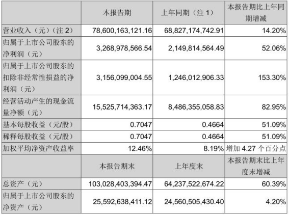 報告顯示,今年上半年,一汽解放營業收入786億元,同比增長14.2%;歸屬于上市公司股東的凈利潤為32.69億元,同比大漲52.06%;扣除非經常性損益的凈利潤為31.56億元,同比大漲153.3%。除此之外,經營活動產生的現金流量凈額、總資產和凈資產均實現同比正增長。