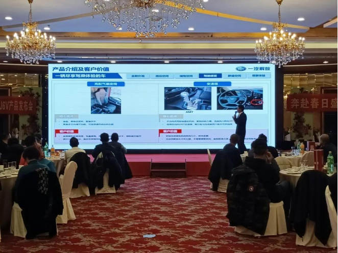 一汽解放云南商代處牽引品系經理王亞永為現場賓客講解了新款J6V產品的全新定位和升級。作為解放J6家族新成員,解放J6V延續了先進設計理念和制造工藝,深刻洞察用戶需求,集結多元優勢,新增7大領域、80項升級技術,賦予運輸行業最高的TCO運營價值。為廣大卡友創造尊貴家居體驗,打造移動之家;尊乘神車品質,傳承至臻匠芯;尊馭致富之路,提升運營價值!