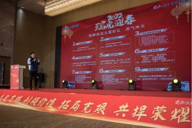 活動(dòng)伊始,一汽解放汽車銷售有限公司江蘇商代處經(jīng)理王念東先生向參加大拜年活動(dòng)嘉賓致辭,王總講道:2021年,面對(duì)內(nèi)外部環(huán)境變化與挑戰(zhàn),一汽解放在合作伙伴的支持幫助下,在全體員工的共同努力下,取得了多項(xiàng)令人矚目的成績(jī)。2021年,全年解放銷售整車近44萬輛,其中,在極度激烈的競(jìng)爭(zhēng)環(huán)境下,中重卡份額達(dá)到23.5%,較2020年提升1.3個(gè)百分點(diǎn),穩(wěn)居行業(yè)絕對(duì)領(lǐng)先地位。在新的一年,解放也將繼續(xù)以用戶需求為導(dǎo)向,不斷創(chuàng)造更加卓越的產(chǎn)品,構(gòu)建更加完善的服務(wù)體系,回饋廣大用戶朋友對(duì)解放的支持與信賴。