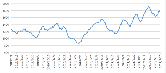 華北區(qū)域:受疫情影響,淀粉市場上游原材料短缺,運量僅為以往50%;綏中道路管控,目前粉煤灰貨源無法發(fā)運。本期,華北指數(shù)報收1614點,環(huán)比下降123點,降幅7.08%;其中,華北至華南指數(shù)報收1648點,環(huán)比下降151點,降幅8.39%。