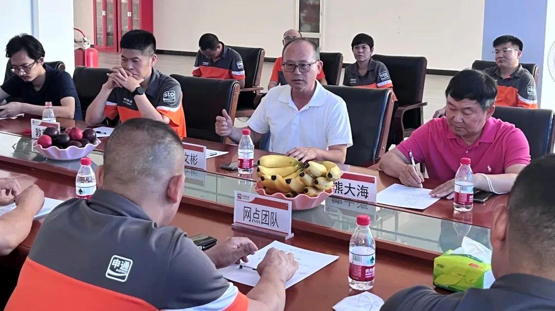 在參觀完轉運中心,王文彬和京津冀大區的十余家網點就地召開座談會。