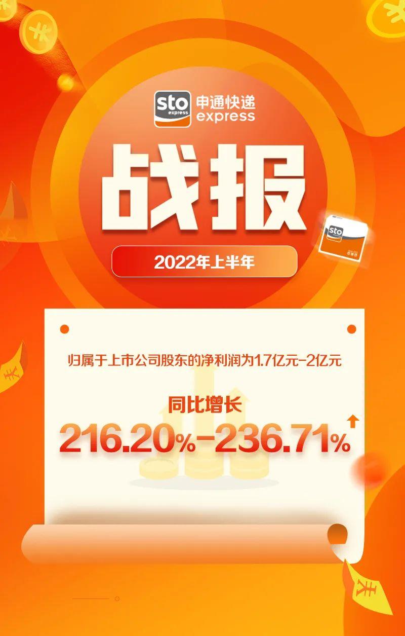 7月14日晚間,申通快遞股份有限公司發布2022年半年度業績預告。