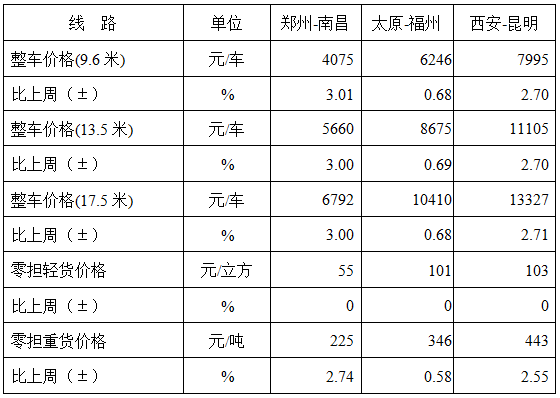 表1 本周部分線路平均價(jià)格及環(huán)比情況對(duì)比